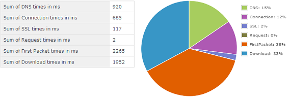 Wie Sie im obigen Diagramm sehen können, dauerte die DNS-Auflösung für alle Elemente auf der Seite etwa 15 % der Ladezeit der Seite. Um fair zu sein, viele Entwickler und Web-Ops-Gurus können die Gültigkeit dieser als Stand-alone-Metriken kritisieren, weil die heute verwendete Technologie uns die Möglichkeit gibt, die Leistung beim Laden von Seiten zu optimieren und damit die Auswirkungen der DNS-Suche auf einer Seite zu mildern. Es gibt eine Vielzahl von Methoden, um die Optimierung des Seitenladevorgangs zu unterstützen, z. B. die Maximierung der Verwendung paralleler Verbindungen, die Verwendung asynchroner Skripts, die Aktivierung der Komprimierung und viele zusätzliche Methoden zur Optimierung des Seitenladevorgangs.