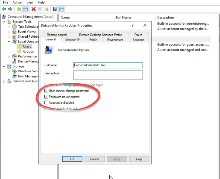Scenario 2 — You are using the default DotcomMonitorRdpUser