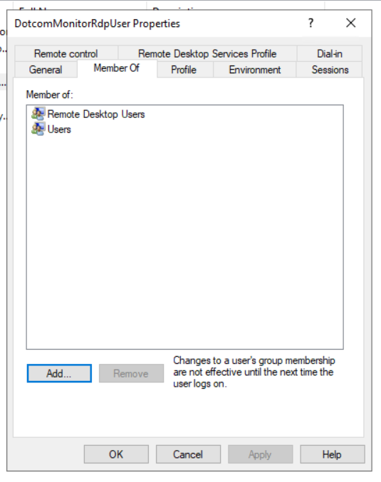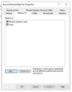 - Click Add and add DotcomMonitorRdpUser.